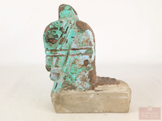 Lot # 104 - Ancienne sculpture sur pierre chinoise avec base en ciment datant du 19em siècle, mesurant 9 pouces de hauteur