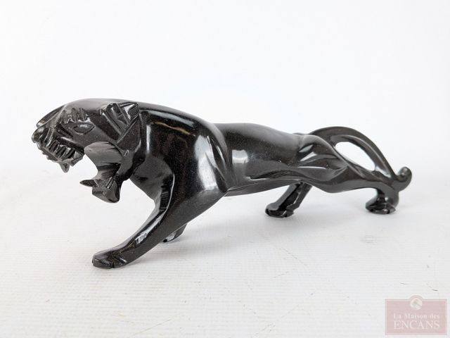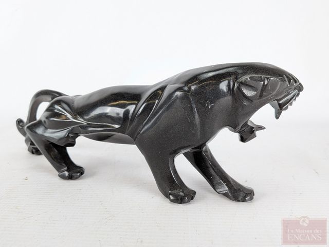 Lot # 48 - Panthère sculptée sur pierre, mesurant 13 pouces