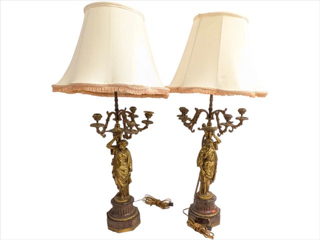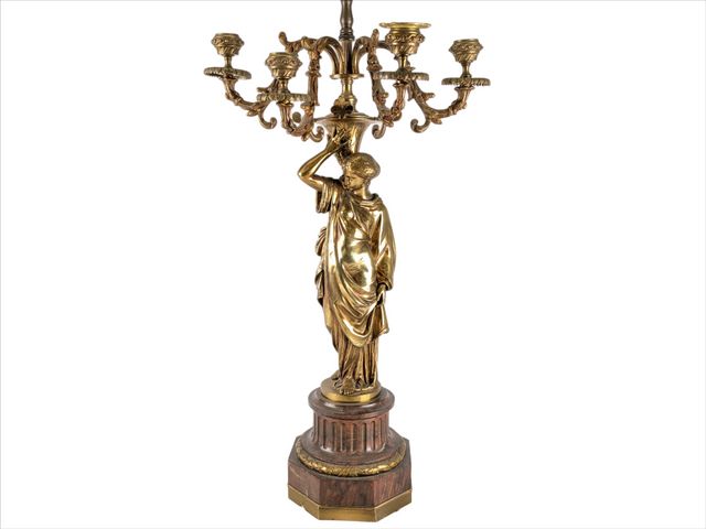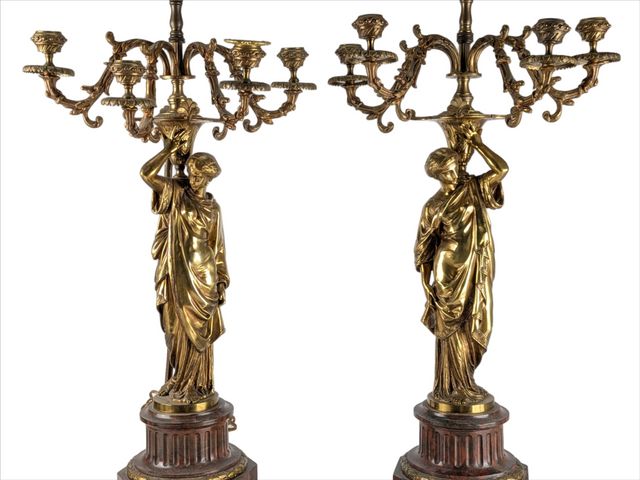 Lot # 57 - Superbe paire de chandeliers électrifiés en bronze doré, style second-empire (Napoléon III), datant du19eme siècle et mesurant 26 pouces de hauteur