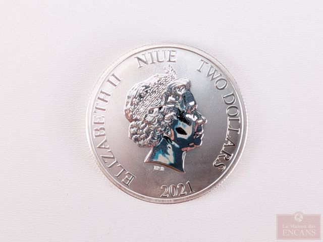 Lot # 194 - Pièce d'une once d'argent pur 999 deux dollars de Niue le Faucon millénaire 2021, sans taxes