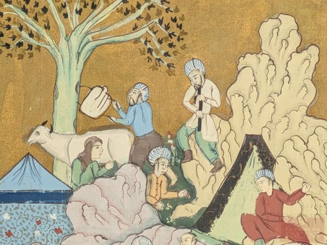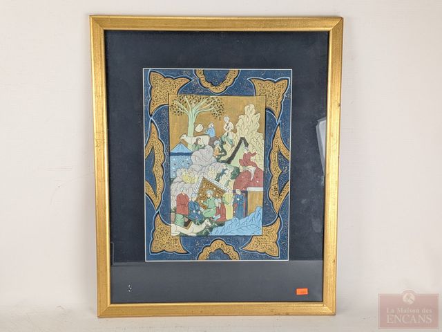Lot # 86 - Enluminure perse peinte à la main sur tissu, mesurant 13x9.5 pouces