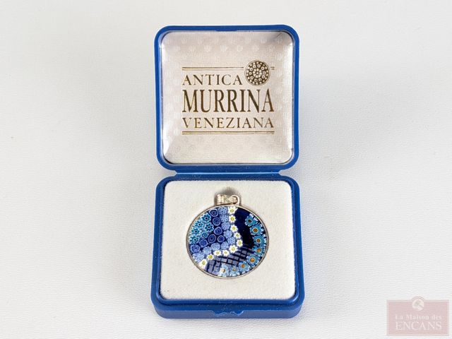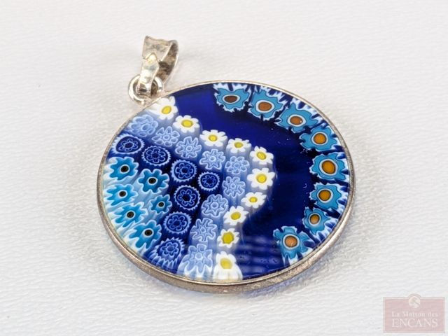 Pendentif Millefiori en argent sterling et verre de Murano, mesurant 1 pouce de diamètre