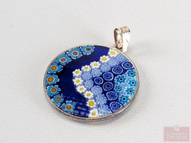 Lot # 229 - Pendentif Millefiori en argent sterling et verre de Murano, mesurant 1 pouce de diamètre