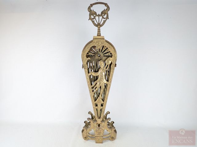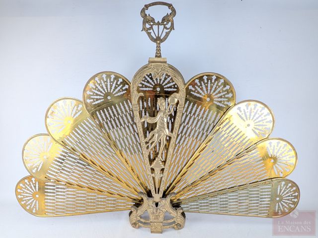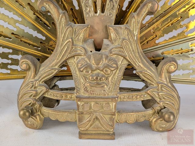 Superbe pare-étincelle en laiton, mesurant 33 pouces de hauteur et 44 pouces de largeur lorsque déployé