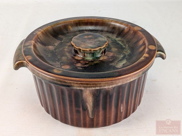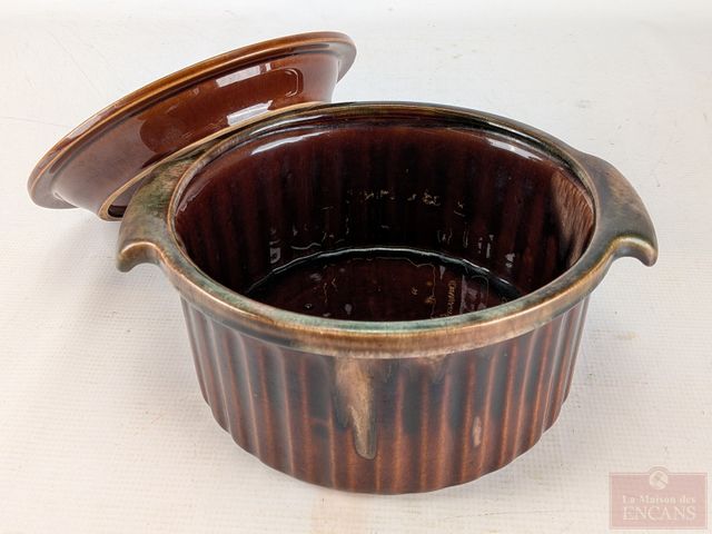 Lot # 27 - Céramique de Beauce Vachon avec son couvercle, mesurant 9 pouces de diamètre