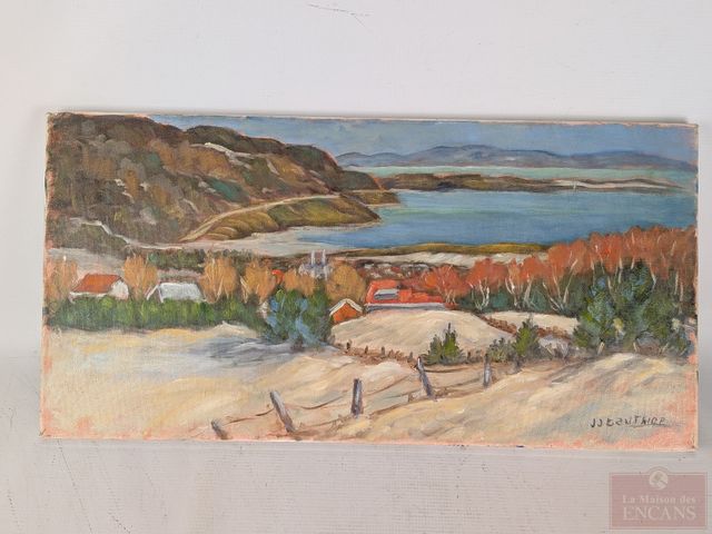 Lot # 5 - J.J. GAUTHIER- Huile sur toile signée, mesurant 12x24 pouces