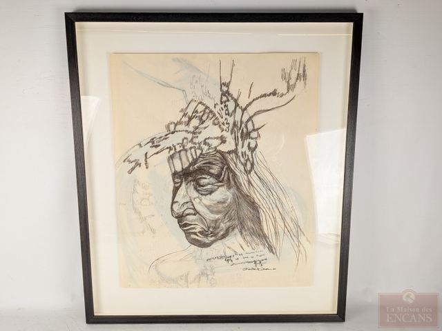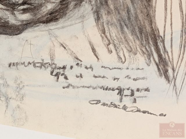 Lot # 17 - DROUIN- Fusain sur papier signé, mesurant 22x19 pouces