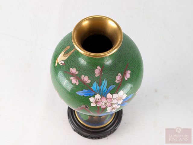 Lot # 50 - Vase chinois en laiton émaillé à motifs floraux, mesurant 9 pouces de hauteur