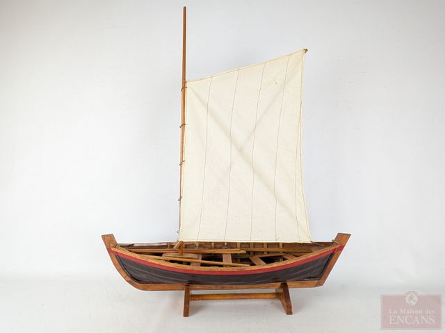Lot # 44 - Maquette de bateau à voile en bois, mesurant 23 pouces de largeur