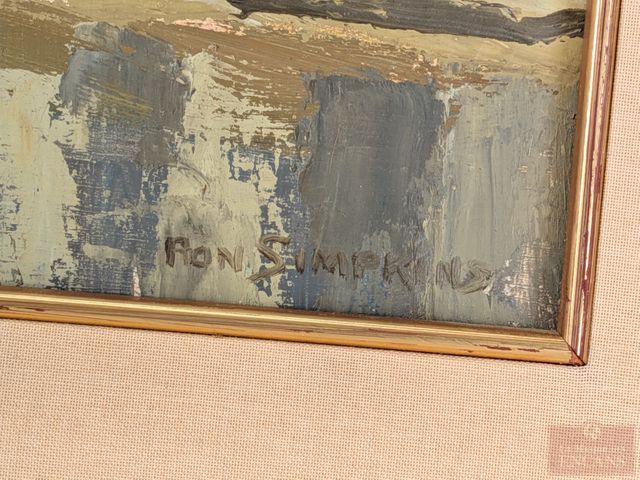 Lot # 148 - Ron SIMPKINS- Huile sur panneau signée, mesurant 15.5x19.5 pouces, dans un encadrement doré à la feuille d'or