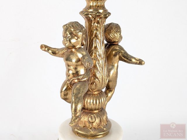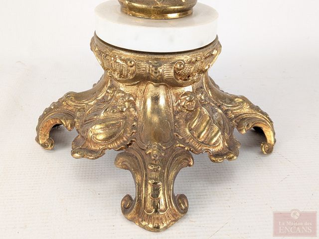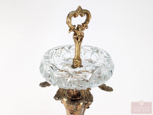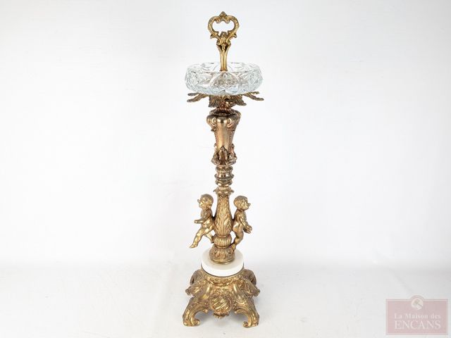 Lot # 26 - Cendrier sur pied en verre pinwheel, marbre et métal avec motifs de chérubins, mesurant 27 pouces de hauteur
