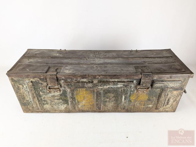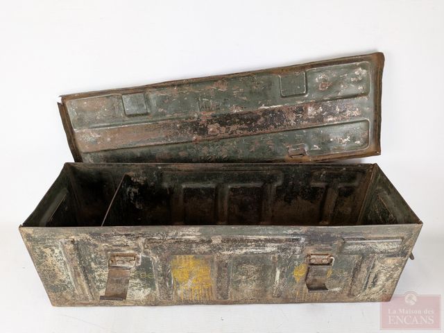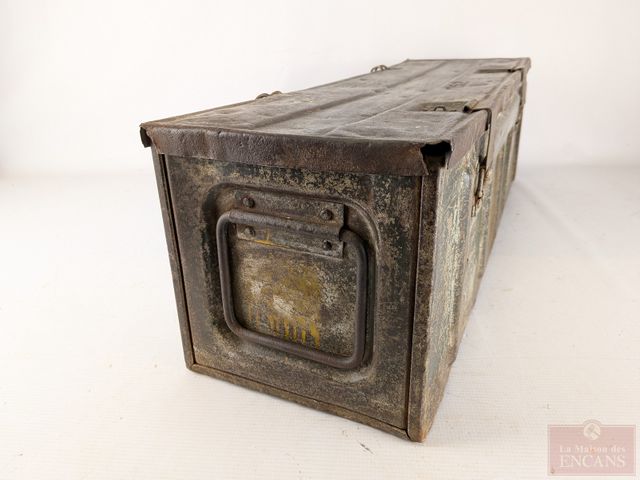 Lot # 45 - Caisse de munitions militaire en métal, datant de la seconde guerre mondiale et mesurant 28 pouces