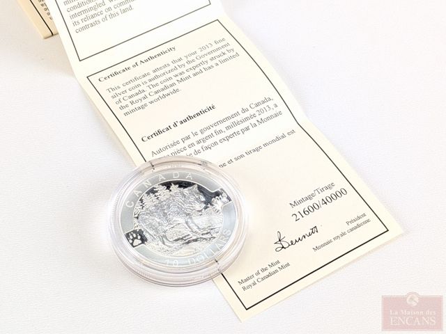 Pièce canadienne d'une once d'argent pur 9999 dix dollars 2013, encapsulée, sans taxes