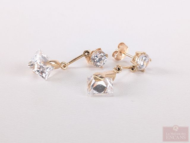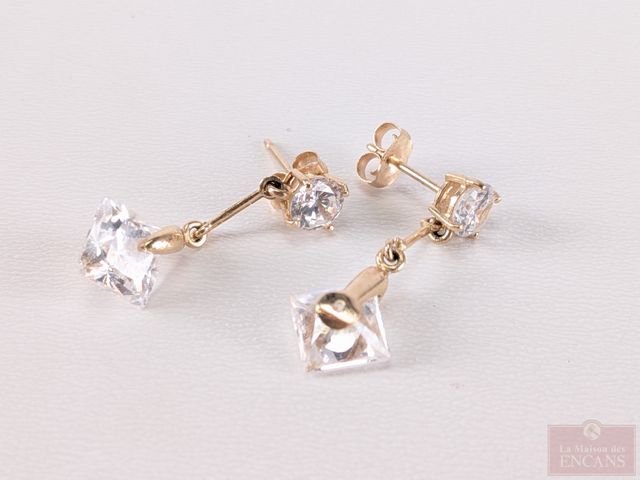 Lot # 200 - Paire de boucles d'oreilles en or 14k, mesurant 1 pouce de hauteur