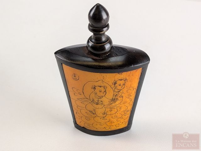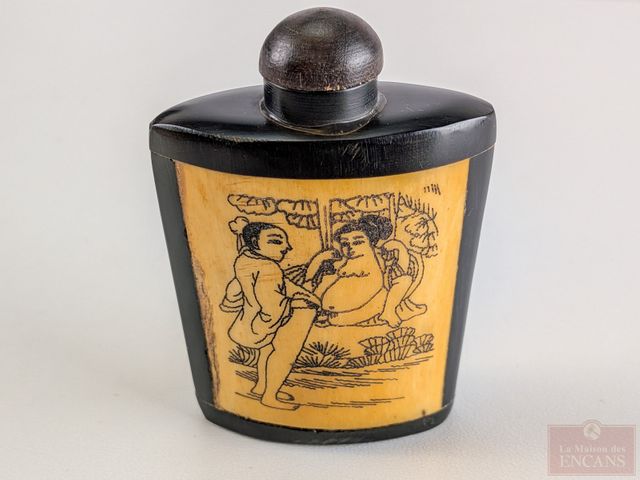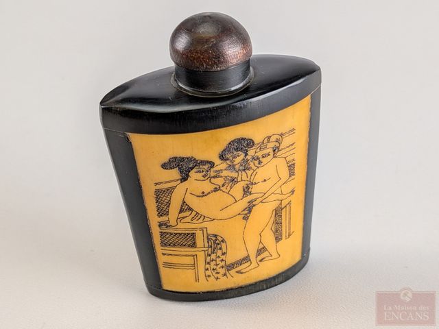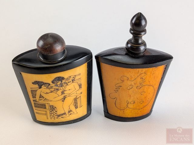 Lot # 210 - Deux tabatières sculptées sur os avec gravures érotiques, la plus grande mesurant 3 pouces