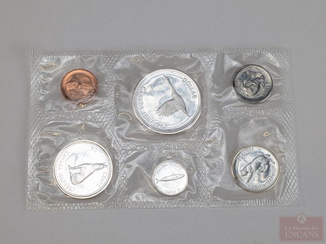 Lot # 232 - Ensemble numismatique canadien proof-like 1967 avec le dollar, le cinquante-sous, le vingt-cinq sous et le dix sous en argent
