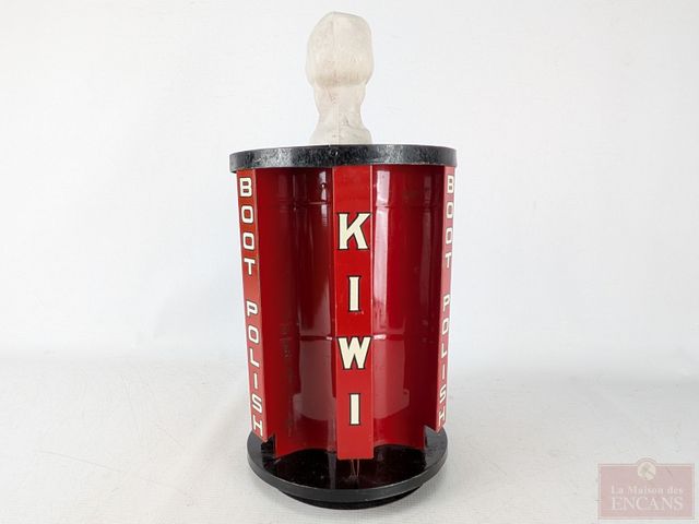 Lot # 146 - Support promotionnel vintage et rotatif pour cire à chaussures Kiwi, fait en métal et mesurant 15.5 pouces de hauteur