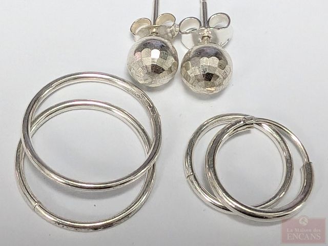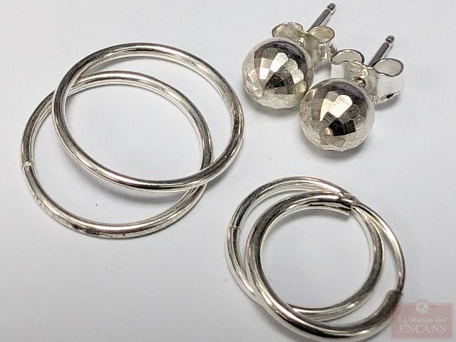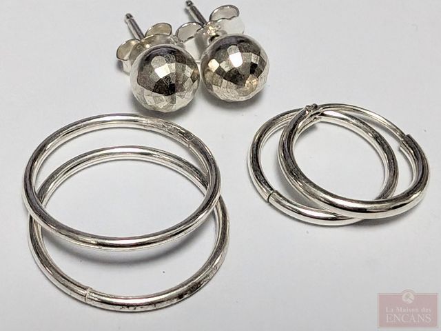 Lot # 188 - Trois paires de boucles d'oreilles en argent