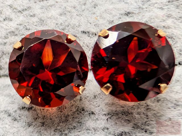 Lot # 40 - Paire de boucles d'oreilles en or 14k serties de grenats, pour un total de 2 carats