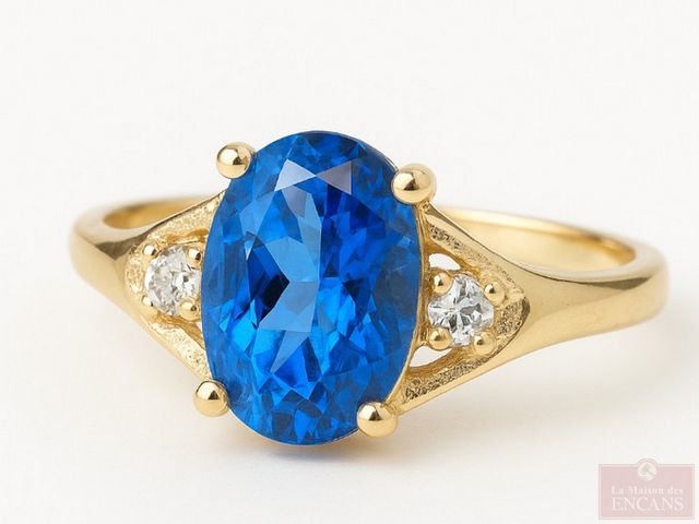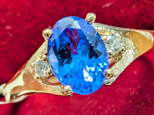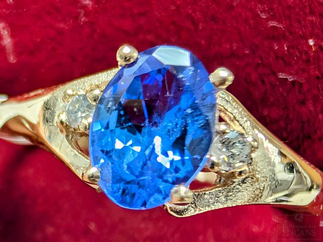 Lot # 29 - Bague en or 10k sertie de tanzanites et de diamants, pour un total de 0.84 carats, taille 7.25