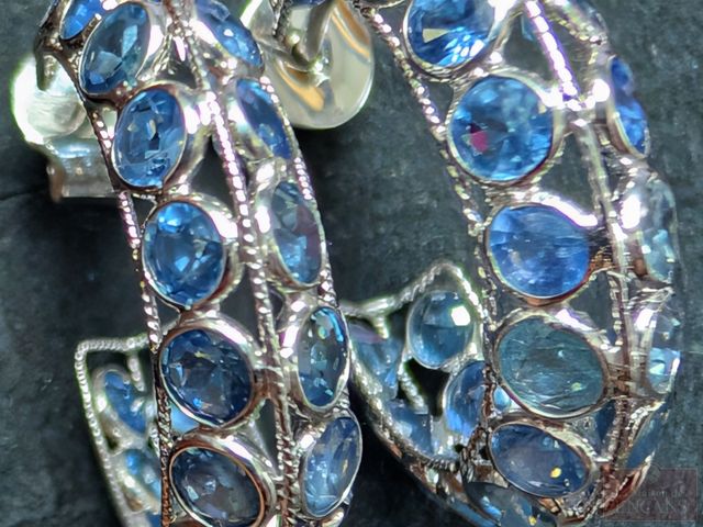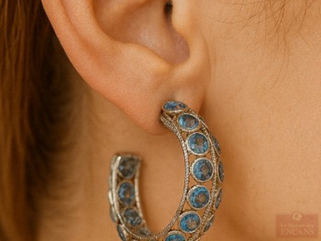 Paire de boucles d'oreilles en argent serties de saphirs bleus, pour un total approximatif d' 1.56 carats