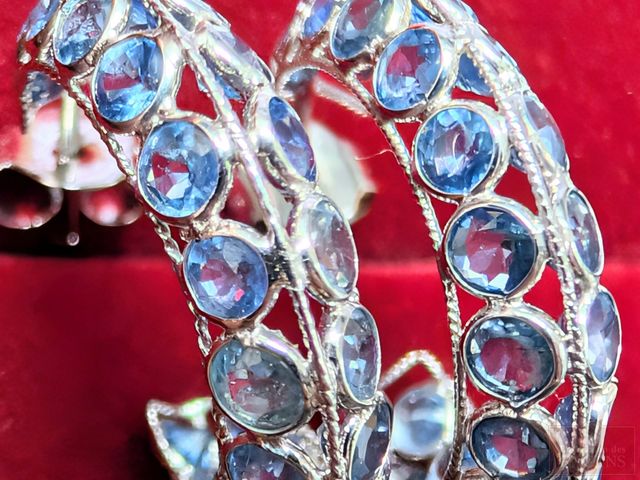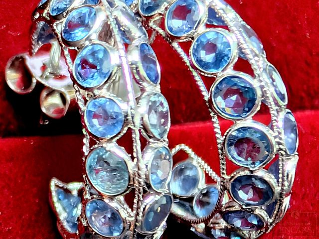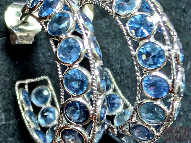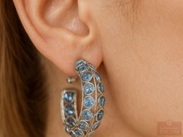 Lot # 22 - Paire de boucles d'oreilles en argent serties de saphirs bleus, pour un total approximatif d' 1.56 carats
