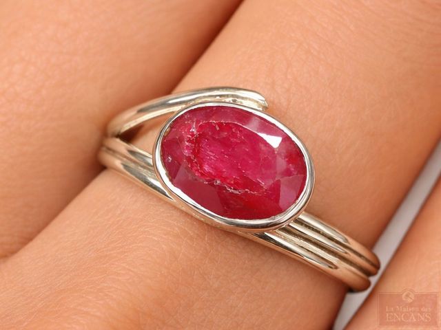 Bague en argent sertie de rubis