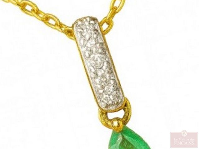 Lot # 25 - Pendentif en argent serti d'émeraudes naturelles, pour un total de 0.35 carats