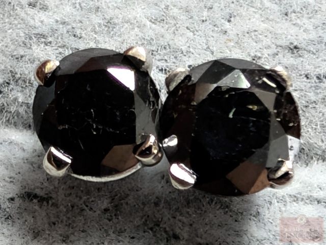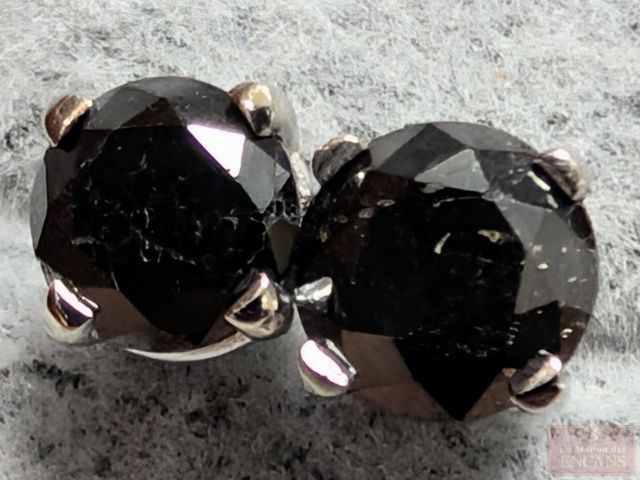 Lot # 165 - Paire de boucles d'oreilles en or 14k serties de diamants noirs, pour un total de 0.84 carats