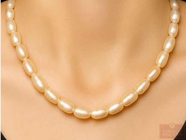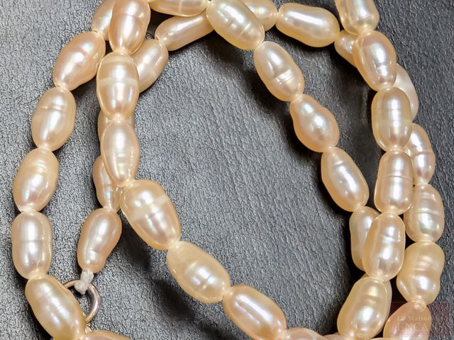 Lot # 6 - Collier de perles d'eau douce avec argent, mesurant 16 pouces de longueur
