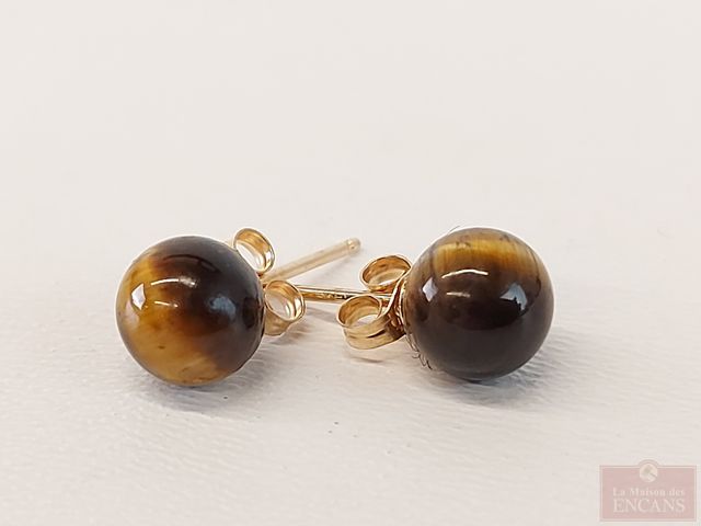 Lot # 206 - Paire de boucles d'oreilles en or 14k avec œil de tigre SOLD