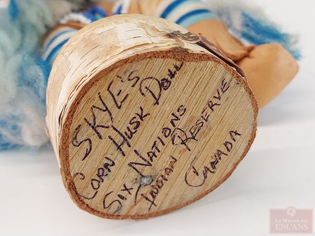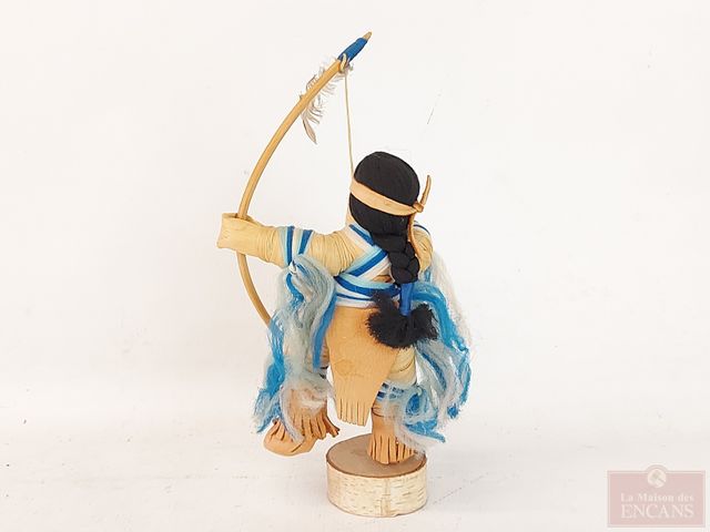 Lot # 136 - Figurine Kachina amérindienne en bouleau et cuir avec billes représentant un chasseur chassant à l'arc mesurant 9 pouces de hauteur - provenant de la réserve des six nations SOLD