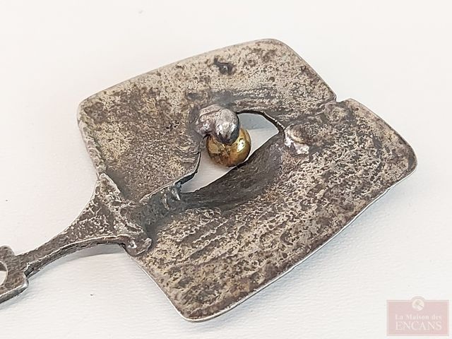 Lot # 224 - Guy VIDAL - Pendentif moderniste en étain signé mesurant 2.25 pouces ainsi qu'une chaine en argent mesurant 18 pouces de longueur SOLD