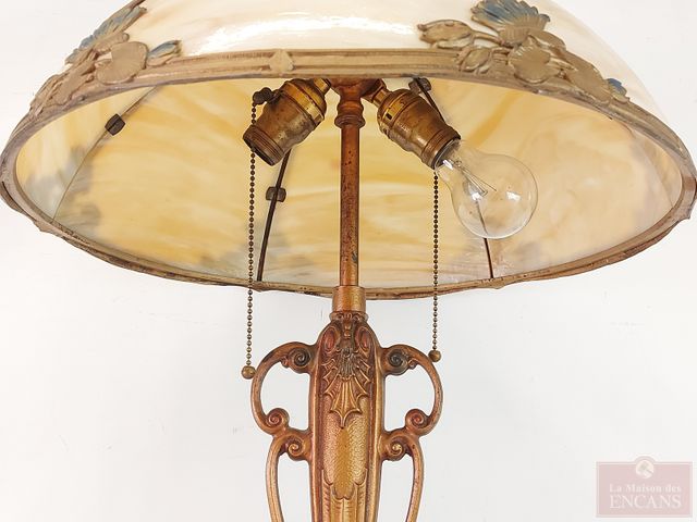 Lot # 7 - Lampe de table art nouveau avec abat-jour en verre - mesurant 26 pouces de hauteur VENDU