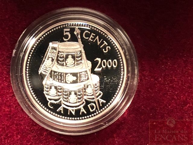 Lot # 4 - Pièce de 5 cents de 2000 en Argent (Les Voltigeurs de Québec) proof avec certificat VENDU