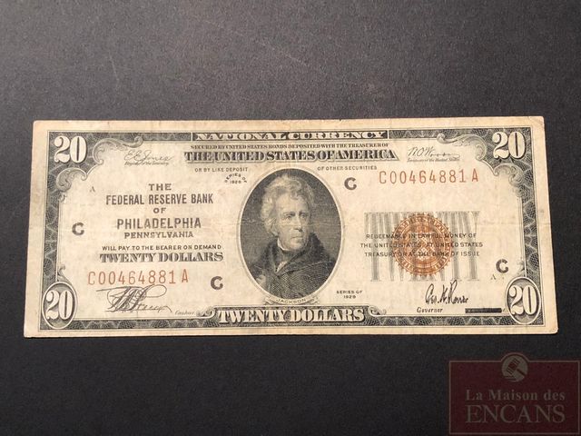 Billet de $20 US de 1929 Vintage (Philadelphia) Président Jackson