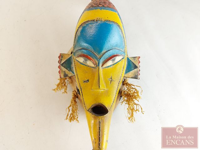 Lot # 230 - Masque africain sculpté sur bois et peint à la main mesurant 28 pouces de hauteur SOLD