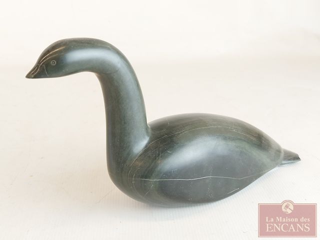 Lot # 222 - Noah OHAYTOOK - Sculpture inuit sur pierre à savon signée avec étiquette - mesurant 9 pouces de longueur VENDU