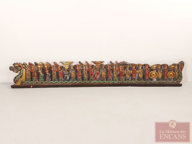 Lot # 33 - Panneau indonésien sculpté sur bois et peint à la main mesurant 76 pouces de longueur SOLD