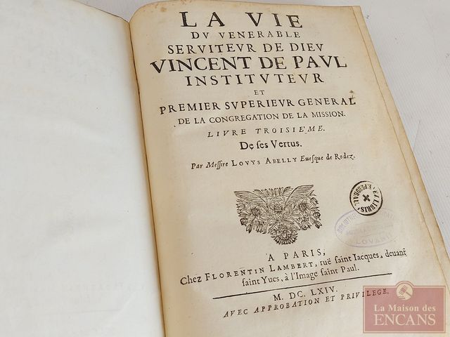 Lot # 211 - Trois volumes complets Vie du vénérable Vincent de Paul - édition Florentin Lambert de 1664 à Paris VENDU