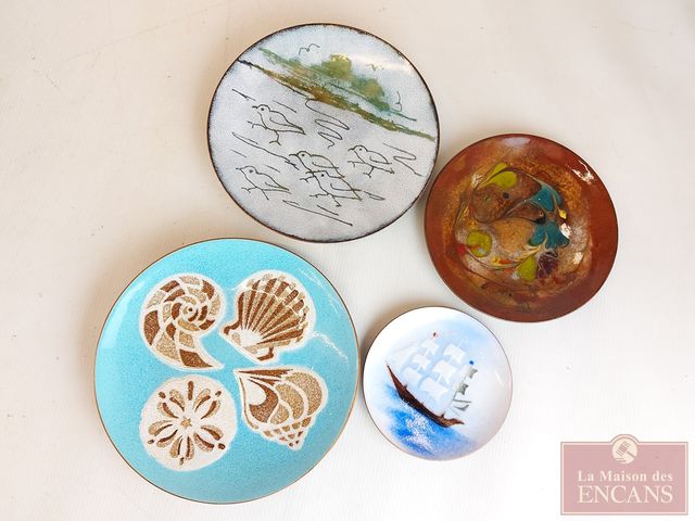 Lot # 213 - Lot d'émaux sur cuivres dont certains signés dont Annemarie Davidson et autres - le plus grand mesurant 14.25 pouces de longueur SOLD