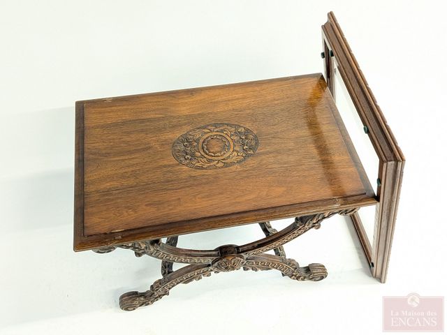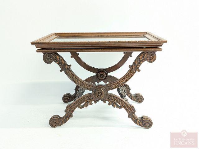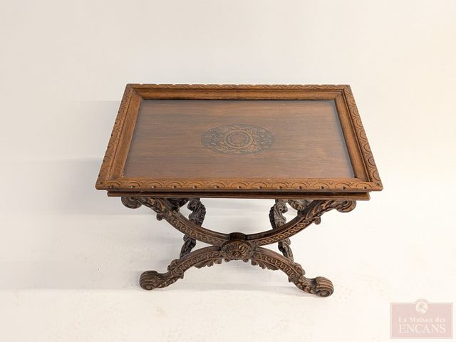 Lot # 126 - Table anglaise Savonarola en bois, finement sculptée, datant du 19eme siècle et mesurant 20x26x17 pouces SOLD