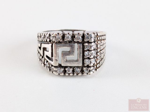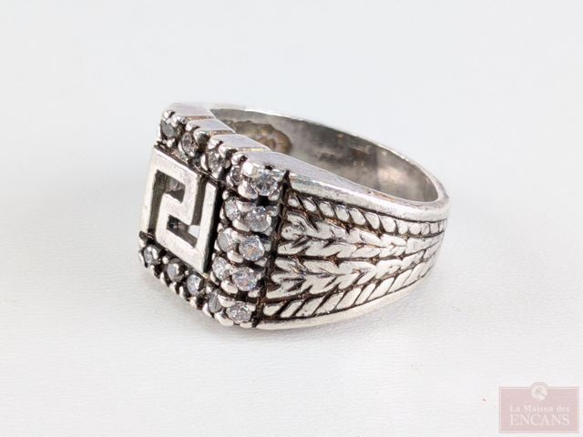 Bague en argent de taille 11.5, de style Versace et sertie de multiples pierres