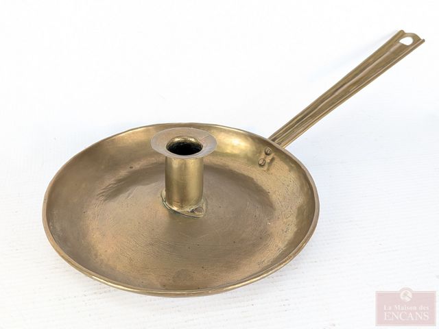 Lot # 176 - Paul BEAU- Bougeoir en laiton arts-and-crafts, signé sur le manche, datant des années 1910 et mesurant 14.5 pouces de longueur SOLD