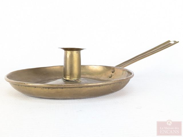 Paul BEAU- Bougeoir en laiton arts-and-crafts, signé sur le manche, datant des années 1910 et mesurant 14.5 pouces de longueur