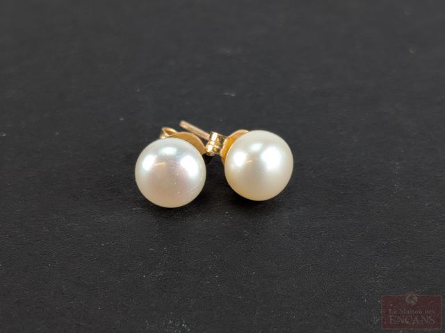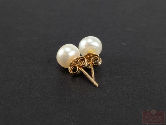 Lot # 238 - Paire de boucles d'oreilles en or 14k serties de perles SOLD