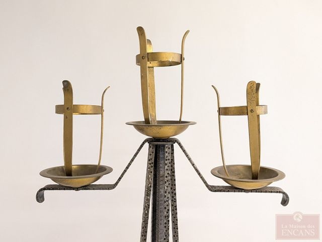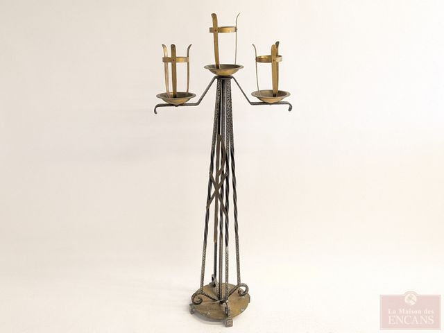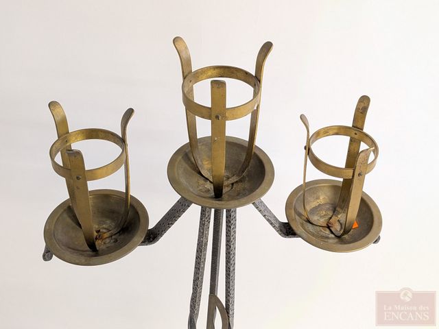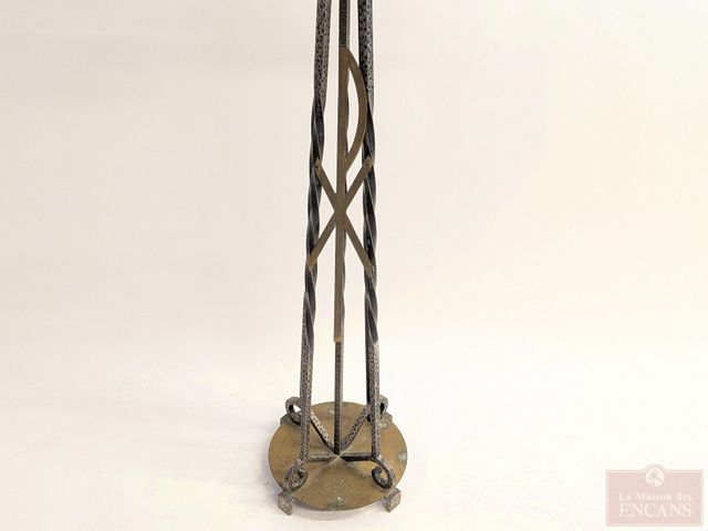 Lot # 155 - Porte-cierge sur pied en laiton et fer forgé, mesurant 54 pouces de hauteur SOLD
