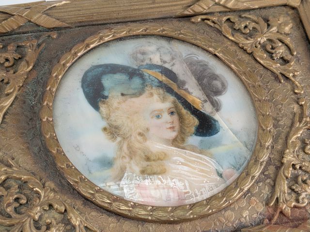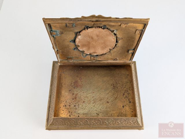 Lot # 183 - Coffre à bijoux français en bronze avec portrait miniature peint à la main, datant de la période Empire (19eme siècle) et mesurant 5.5 pouces SOLD