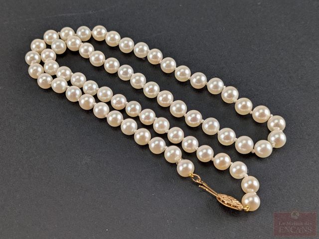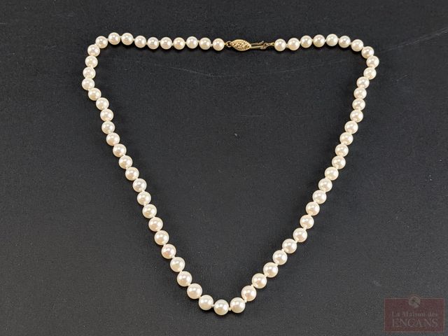 Lot # 214 - Collier de perles naturelles nouées 7mm avec fermoir en or 14k, mesurant 18 pouces de longueur SOLD
