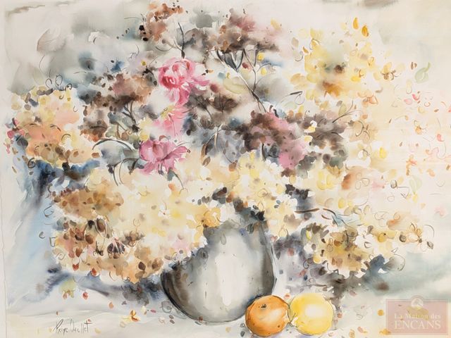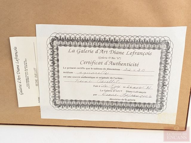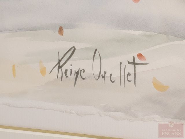 Lot # 129 - Reine OUELETTE (mère de Jean Leloup) - Aquarelle signée, mesurant 22x30 pouces avec certificat d'authenticité à l'endos SOLD